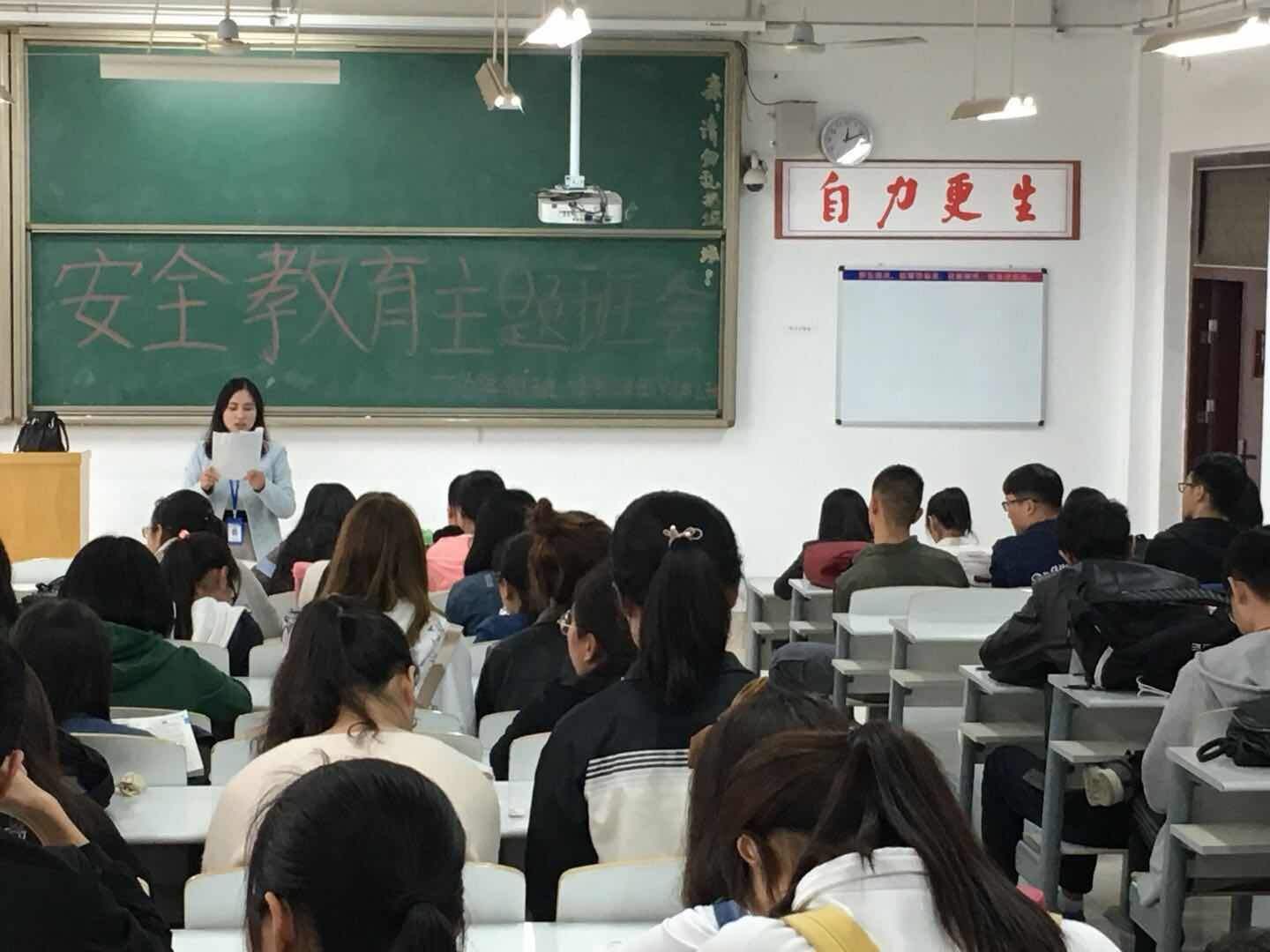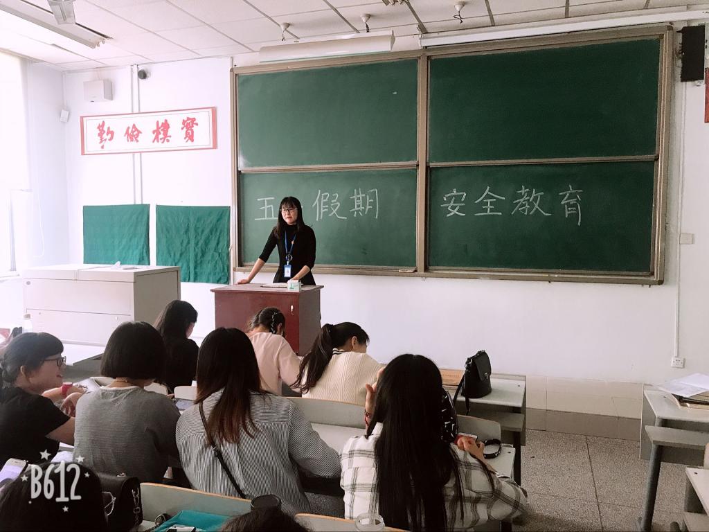 4月25日,365VIP英国上市官网团委副书记蔡艳丽老师,16级年级团总支书记郑杰老师分别在时金楼215,综合楼306,组织16级经贸会计1班、2班、财本2班,审计1、2、3班团支部召开“五一”假期安全教育主题班会。