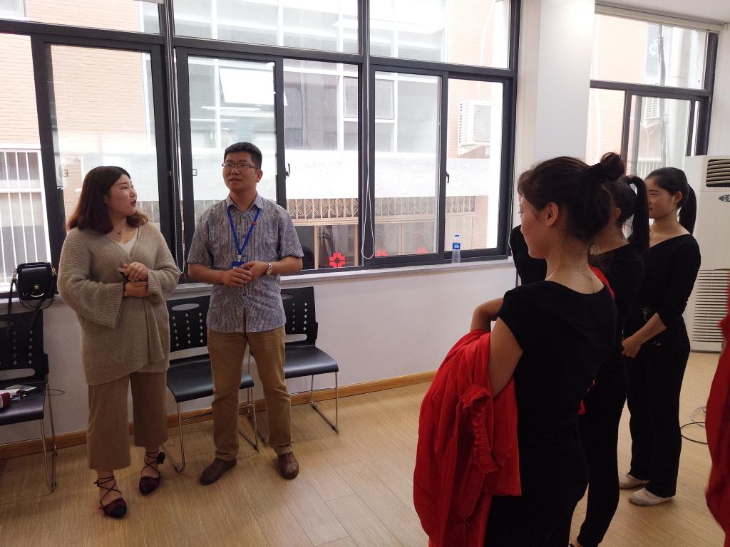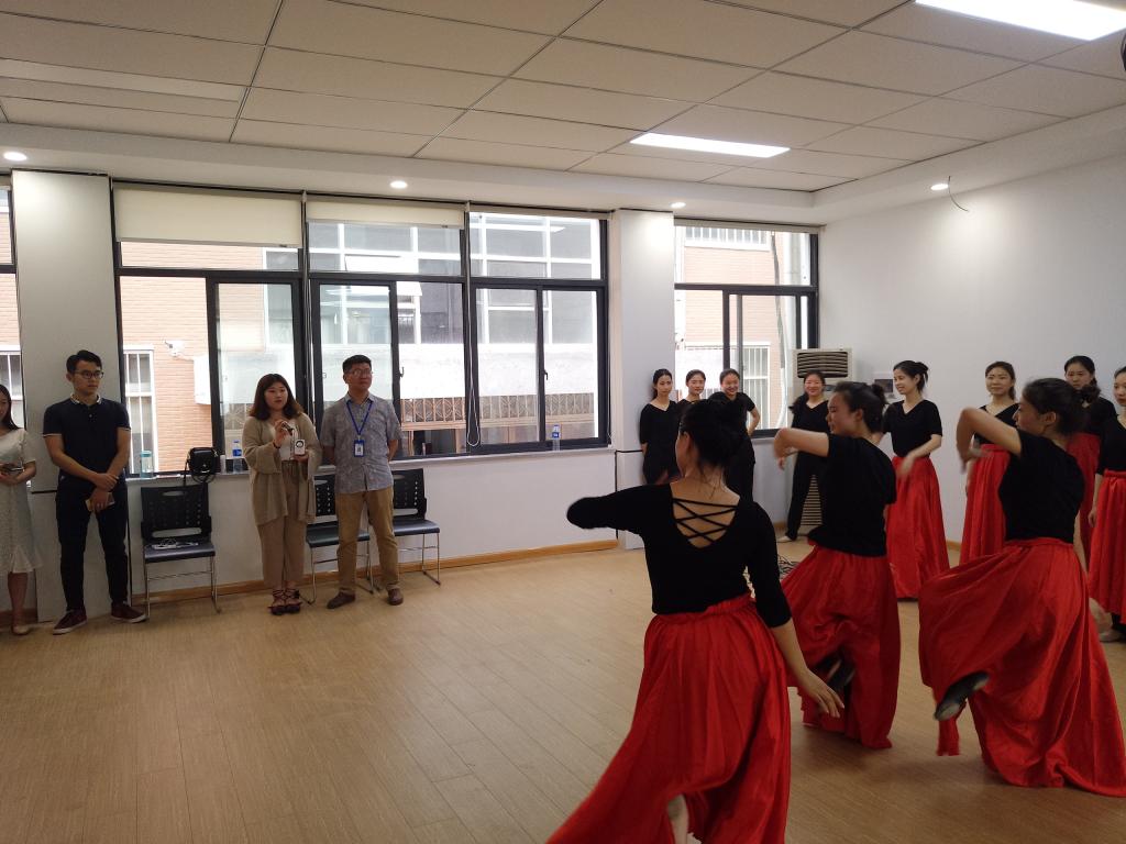 在训练场地,舞蹈队长向陈老师汇报了舞蹈队近期的训练情况,并进行了训练成果展示,受到了陈老师和团学会主席团干部们的一致赞许。看到队员们满头大汗,有的同学胳膊、腿上还带着伤,陈老师和团学干部们倍受感动,对现场队员们不断给予关心和鼓励。陈老师说道:“今天代表公司党政领导来看望大家,看到同学们良好的精神面貌感到非常欣慰,向同学们长期以来的辛勤付出表示慰问、肯定和感谢,希望同学们继续努力,全面发展,用优美的舞姿点亮会计学子的靓丽人生”。