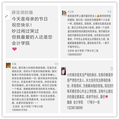 活动开始后,同学们踊跃参与,纷纷在留言板上书写出对妈妈的感恩之情,期间共有300余名同学参加了此次大赛活动。经过社团和辅导站的严格筛选,共选出一等奖一名,二等奖两名,三等奖三名同学,这些同学向母亲表达爱的信息感情真挚,富有创意,非常适合在同学中传播这种爱。随后,辅导站将给获奖同学的母亲寄去神秘礼物和送去真挚的祝福,向母亲传达出他的孩子对他深厚的爱。