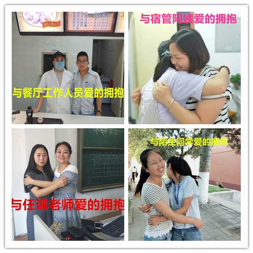 同时,在活动举办期间,公司同学们也热情向校园内的各种人员张开双臂,给出爱的抱抱,有陌生的同学,有宿管阿姨,有任课老师,有餐厅工作人员。同学们期望通过对他们热情的拥抱,表达出对同校之友的尊重,对校园工作人员的感谢,希望让爱的阳光洒满整个校园!