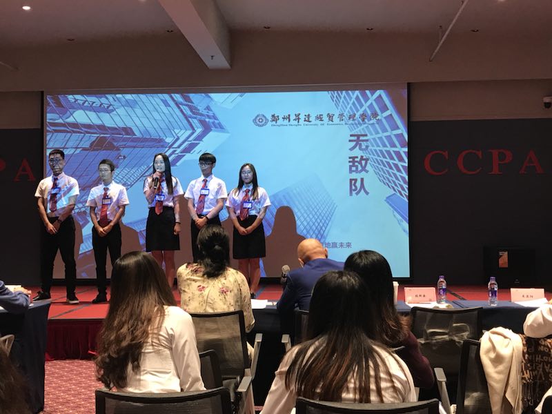 2018年5月25日-26日在上海东方明珠电视塔2号会议厅举办“CCPA 2017—2018年度全国财经类院系员工综合能力挑战赛全国总决赛”,来自上海财经大学、南京审计大学、暨南大学、华南农业大学、中山大学南方公司、仲恺农业工程公司等107支队伍参加了本科及本科以上组的区域赛和总决赛。公司代表队由指导教师周锋、李嘉慧、代莉娟,员工胡猛、丁志、龚云飞、解一丹、王晓艳组成,是唯一一所河南省高校本科组队伍,经过师生的努力和精心准备,最终获得本科组团体赛优胜奖、胡猛同学荣获本科组员工综合能力十佳选手称号。