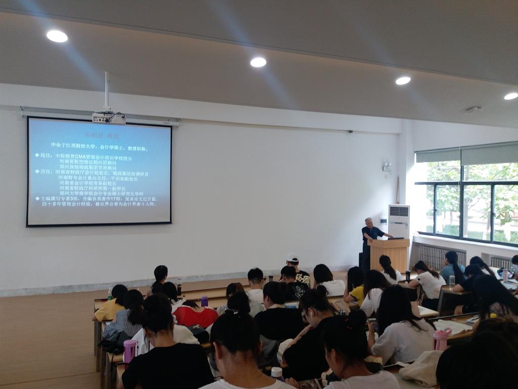 仲夏苦夜短,开轩纳微凉。2018年6月25日下午两点半,在教学四号楼118室,365VIP英国上市官网近200名学子齐聚一堂,认真倾听了由河南省航空港区首席顾问、郑州保税物流集团首席顾问、郑州大学商公司会计硕士导师侯相恩教授题为《新经济形势下会计实务应用与发展方向》的学术报告,与在校员工分享了当前新经济形势下会计实务应用与发展的最新动态。