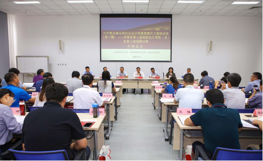 培训班还安排了两场研讨会。7月23日晚上,河南大学商公司经理、河南财经政法大学和郑州航空工业管理公司分别就“工商管理团队建设”、“MPAcc培养经验”以及“会计本科教育改革经验”三个议题分别进行主题报告与研讨;7月27日下午,培训人员还围绕会计法修订、会计科研经验交流、会计本、硕人才培养经验交流和会计实践教学等方面分三组进行了面对面的圆桌研讨。