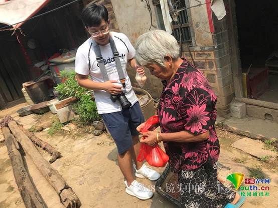 队员们在购买老人家的土鸡蛋。中国青年网通讯员金文洁摄