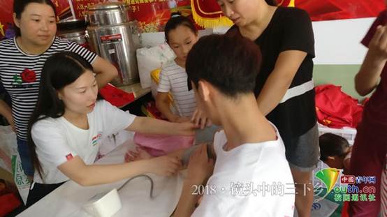 下午,服务团成员们还请了一位李医生来为环卫工人和老人们义诊,虽然条件有限、知识有限,成员们只能为他们测量血压,但是服务团的成员们都希望他们能有一个健康的好身体!