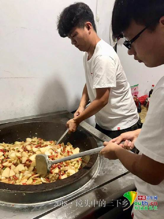 队员们在炒菜。中国青年网通讯员黄犇摄