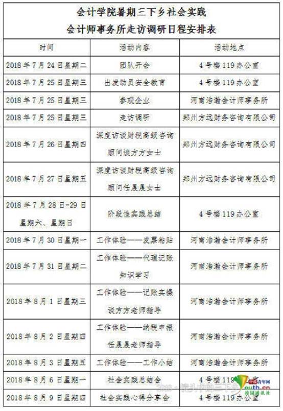 团队走访调研日程安排表。中国青年网通讯员黄犇提供