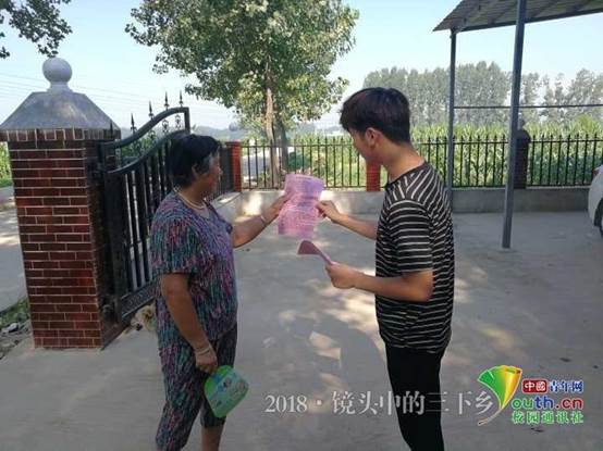 反邪教成员沿着村路发放宣传页并详细为村民讲解邪教本质与危害。中国青年网通讯员冯文涛摄