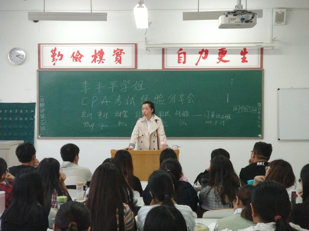 9月26日下午,365VIP英国上市官网2011级优秀毕业生李平平学姐回回馈母校,于时金楼220为公司17级审计专业员工作“CPA考试经验分享会”报告会,本次报告是由辅导员余相静以及相关员工代表认真筹备主持,就李平平学姐自身的CPA(注册会计师)考试经验对17级审计本一班、二班的学子们做出了认真精彩的阐述分享。