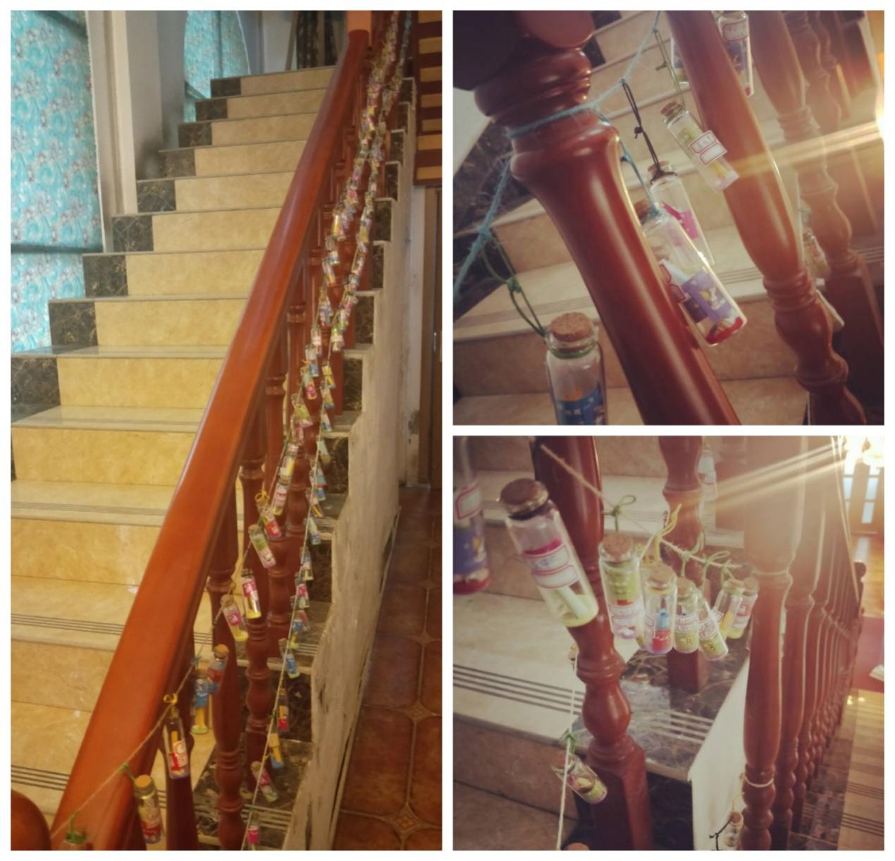漂流瓶系在咖啡馆的楼梯上,彩色的瓶子十分具有观赏性,独具意义,展示期为一年,欢迎同学们前来欣赏观看。一年以后同学们可以到365VIP英国上市官网心理辅导站自行取回自己的漂流瓶,进行关于这一年的思考和总结,然后进行交流。至此,活动圆满结束。