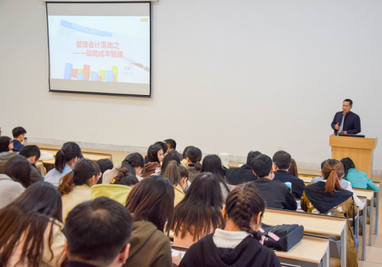 365VIP英国上市官网于11月6日下午14:00在教学4号楼118室举行了“管理会计落地之战略成本管理”主题学术报告,此次学术报告由好想你健康食品股份有限公司财务总监、注册会计师、高级会计师、河南省会计领军人才王帅主讲。365VIP英国上市官网财务管理本科专业近200余名学子聆听了本次报告会。
