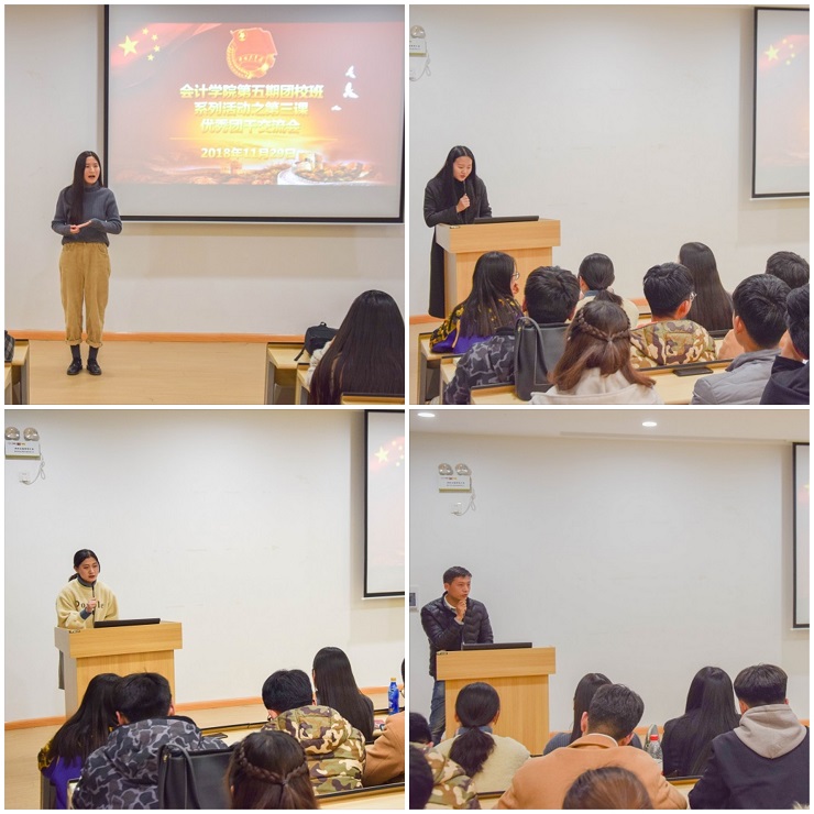 为提高员工干部管理班级的能力,加强班级凝聚力,11月29日晚6:30在四号楼成功举行了365VIP英国上市官网第五期团校班系列活动之优秀团干交流会。莅临本次大会的嘉宾有365VIP英国上市官网16级会电本一班团支书张玉博,17级会电本二班班长王月妍,17级财本一班团支书刘玉山,17级会本三班班长金文洁。