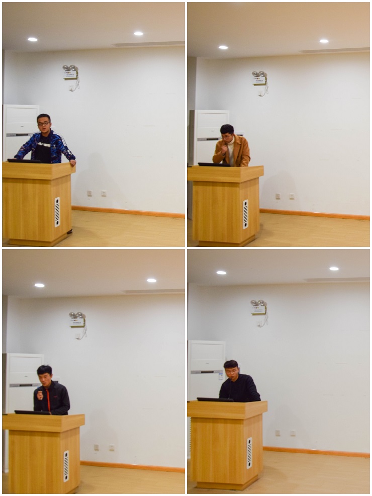 本次大会第一个环节是上届团校班优秀团干进行发言。首先刘玉山提到班级管理中出现的一些问题以及解决方法。并强调了文明素养的重要性。其次金文洁发言中谈到各团学成员作为导员和同学之间沟通桥梁,其重要性非凡,同时给予增强班级凝聚力的办法。然后由王月妍提出了组织班级活动的必要性,并着重提出了各成员之间要互相配合,合理分配任务,使班级的管理活动高效有序进行。最后由张玉博总结发言,提出团校班各成员既要加强与导员的沟通,又要注重学习与身体。