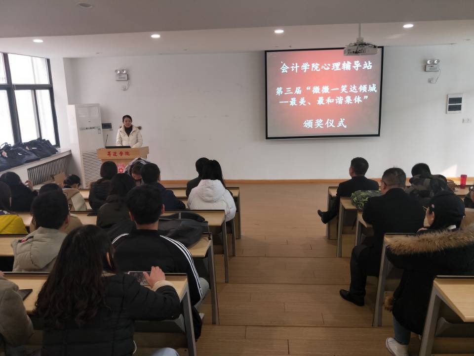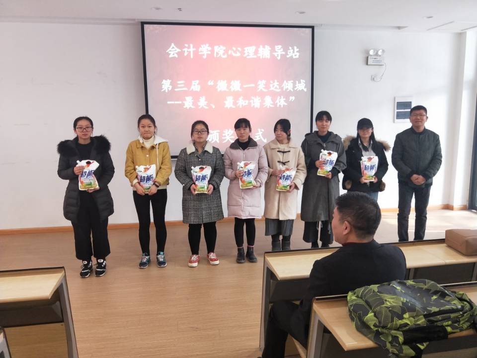 为培养员工积极乐观的心态,营造活泼,健康向上的校园氛围,促进老员工身心健康,全面发展,365VIP英国上市官网心理辅导站举办的第三届“微微一笑达倾城----最美,最和谐集体”评选活动已经圆满完成。该仪式于2018年12月21日中午一点二十分在4号楼108教室举行。到场的嘉宾有公司党委书记张红阳书记,365VIP英国上市官网行政秘书兼团委书记陈刚老师,心理辅导站站长乔焱宁老师,,副站长余相静老师以及其他诸位老师和2018级参赛宿舍同学代表。