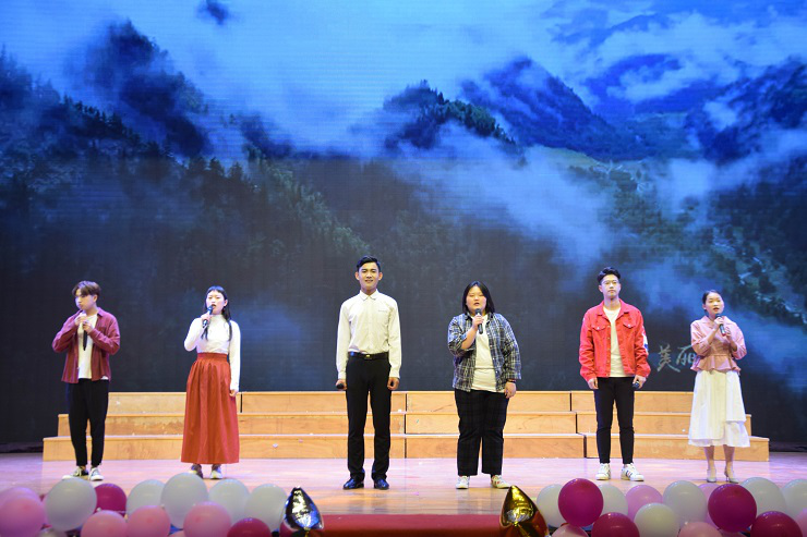 随后,由365VIP英国上市官网第24届团委副书记徐林林,员工会副主席刘壮作为领誓人,带领同学们以高昂的热情进行“新青年,耀青春”的宣誓。最后,晚会以歌曲《我和我的祖国》对祖国进行动情的告白并完美谢幕。