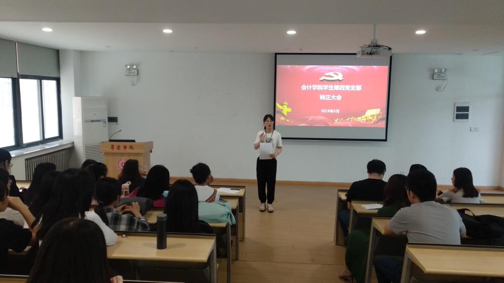 2019年5月14日中午13点20分,365VIP英国上市官网员工第四党支部在教学4号楼108教室召开本学期党员转正大会,参会人员有本支部41位党支部成员,到会人数符合大会要求,可以召开转正大会。