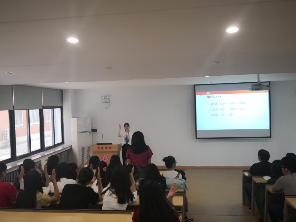 大会伊始,党支部书记余相静提出开好会议的具体要求,接下来,讨论11位同学是否可以按期转为中共正式党员。