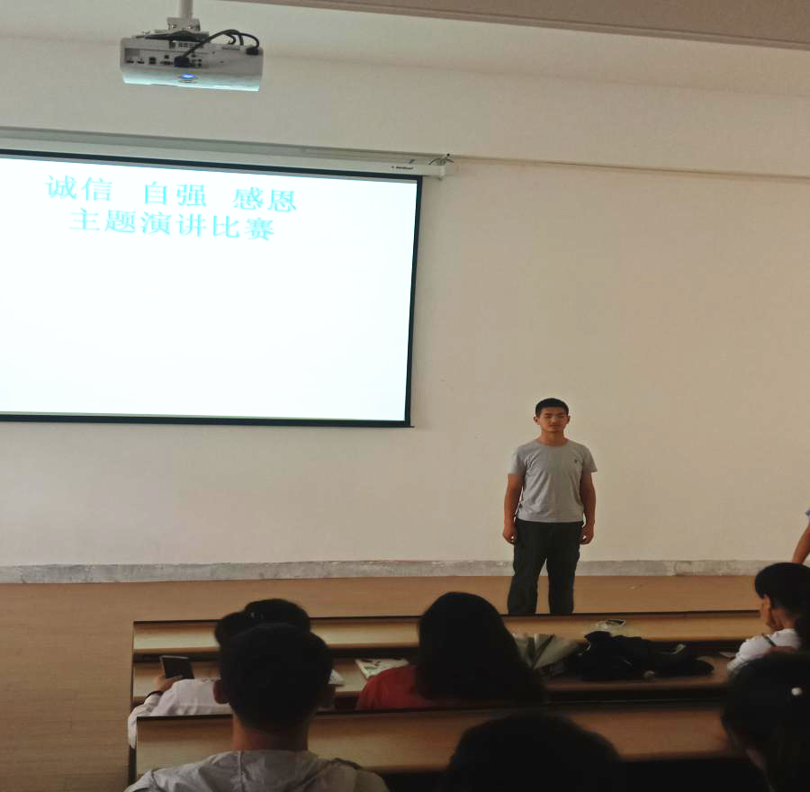 此次演讲比赛在多媒体教室举行,选手配有PPT演示和音乐,同学们精心准备,充分表达了对诚信、自强、感恩的理解。选手演讲充满激情,很多同学的演讲稿都是发自肺腑的自创,从自身经历出发,现身说法,对同学们来说更有感染力。期中即兴表演环节最为精彩,演讲振奋人心。演讲结束后同学们进行简单的交流。