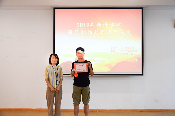 接下来,是激动人心的颁奖环节。由社联副理事长郑文涛为优秀奖获得者17级会本3班袁晋丽、18级审计1班王修群、18级审计1班丁雨晴、18级会本3班张冰洁颁奖。由书记助理张玉博为三等奖获得者17级会本3班徐闯、18级审计1班杨一品、18级会本1班郑文静颁奖。由团委副书记徐林林为二等奖获得者16级经会1班葛涵冰、18级审计1班李云想颁奖。由17级团总支部书记支园园老师为一等奖获得者18级税收1班郭啸阳颁奖。活动至此圆满结束。
