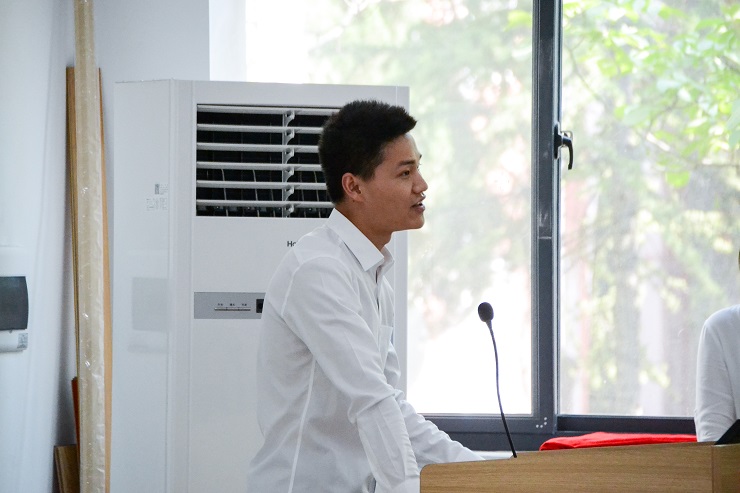 随后,毕业生党员代表荆留铭同学发表讲话。他通过回顾入党经历,深刻体会成为一名合格党员的高标准和严要求,并表示会继续努力,牢记师恩、敢于担当、铭记校训,在新的人生阶段牢记党员身份,不断成长。