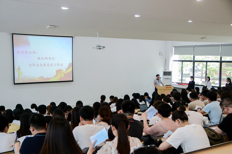 最后,由张红阳书记为毕业生党员送上寄语,张书记讲到以下几点:一、作为毕业生党员,要时刻牢记党员身份,保持政治清醒、立场坚定;二、要发挥党员先锋模范作用,在毕业离校期间发挥骨干力量,带领其他同学做到遵守校规、文明离校;三、真诚祝福全体毕业生,在人生新的阶段里修身修德,学会做人、学会做事,坚定理想信念,立志成才,为母校增光添彩。