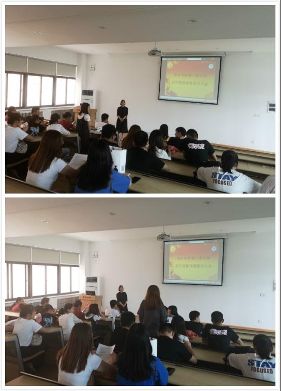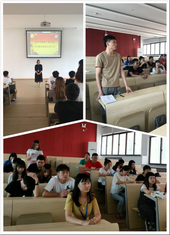 会议开始,鲁玲玉老师宣布员工第三党支部新的更新名单,本次需要接收预备党员共5名同学:杜莎莎、张晨曦、程真、张欣彤、邵高雨。请5名同学用3--5分钟汇报一下自己最近的思想、工作、学习情况。由组织委员和宣传委员做最后的总结。