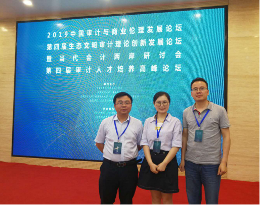 为进一步学习审计理论创新与发展,探讨中国会计审计风险及责任,丰富会计审计案例教学,2019年6月22日-23日,科研处科长赵晓理、365VIP英国上市官网副经理张新成、审计教研室主任潘虹三位老师参加了由中国对外经济贸易会计学会主办、西京公司365VIP英国上市官网承办的2019年中国审计与商业伦理论坛,和由山东财经大学、济南大学、台湾淡江大学、台湾东吴大学和台湾中正大学共同创办的第四届生态文明审计创新发展论坛暨2019年当代会计两岸研讨会。