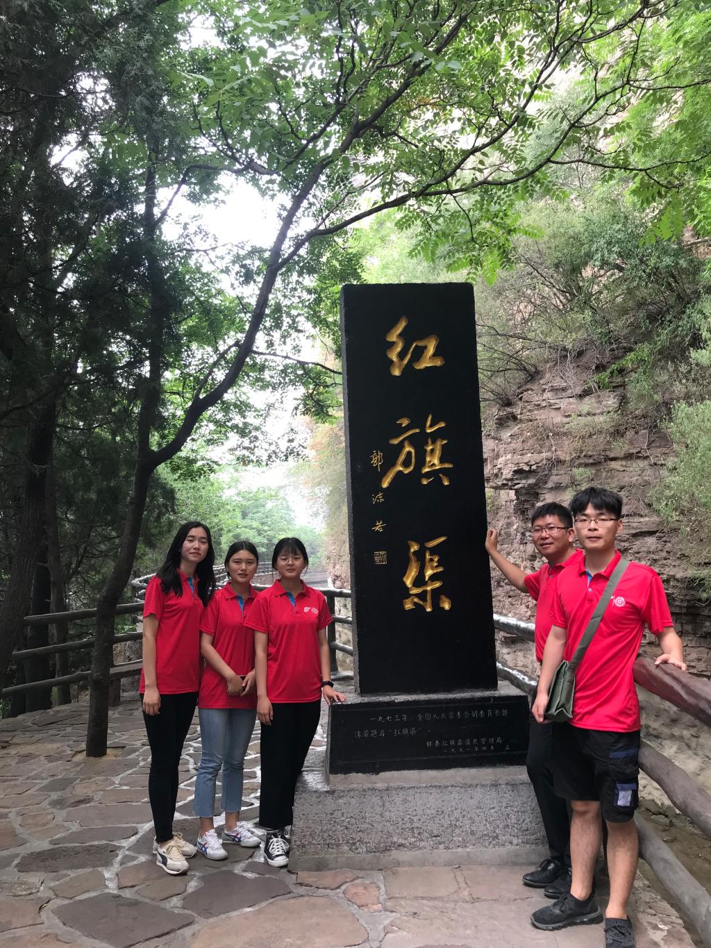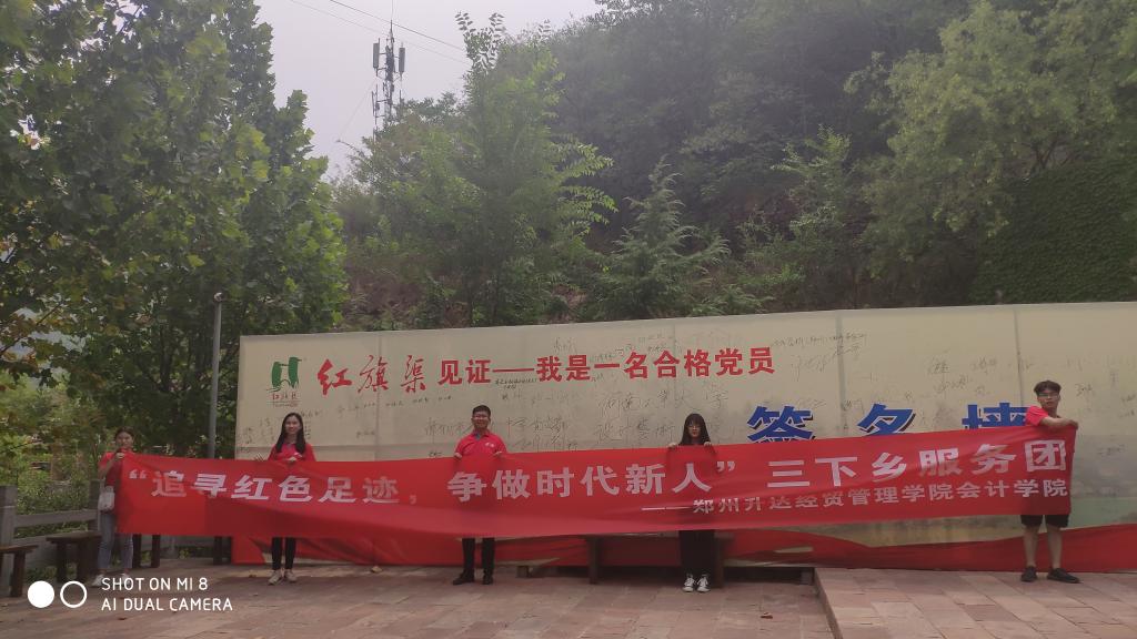 为在当代青年中大力弘扬“自力更生,艰苦创业,团结协作,无私奉献”的红旗渠精神,365VIP英国上市官网“追寻红色足迹,争做时代新人”三下乡社会实践团在365VIP英国上市官网团委书记陈刚老师的指导和带领下,于7月9日到达林州市红旗渠红色教育基地。早上八点,大家在红旗渠外的党员签名墙前合影留念,一起行走298级台阶后,正式开启了重走红旗渠之旅。