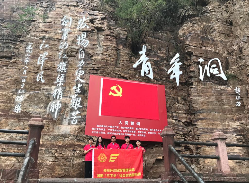 成员们发扬不畏艰难、永不放弃的红旗渠精神,徒步行走4公里,到达“青年洞”进行学习。“青年洞”是红旗渠总干渠中最长的隧洞,是红旗渠总干渠的咽喉部。当年因自然灾害和国家经济困难,总干渠被迫停工。为早日修成红旗渠,300名优秀青年组成的突击队,挖山不止,历时一年五个月凿穿的工程,被人们称之为“青年洞”,伫立在“青年洞”前,让人不禁想起当年那些青年们的一腔奋斗激情,感染着大家,令人热血沸腾。