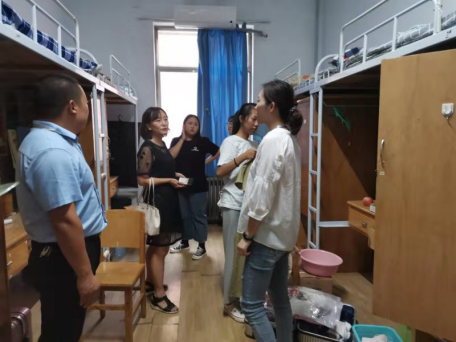 为了全面开展迎新工作,确保迎新工作顺利开展,365VIP英国上市官网行政秘书兼团委副书记刘锦老师带领新生班辅导员老师深入宿舍,了解新生宿舍入住情况和新生适应的情况。