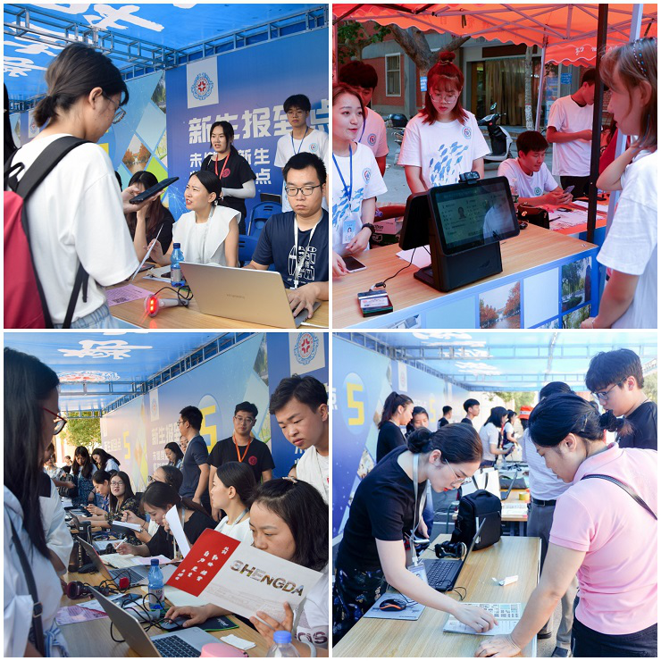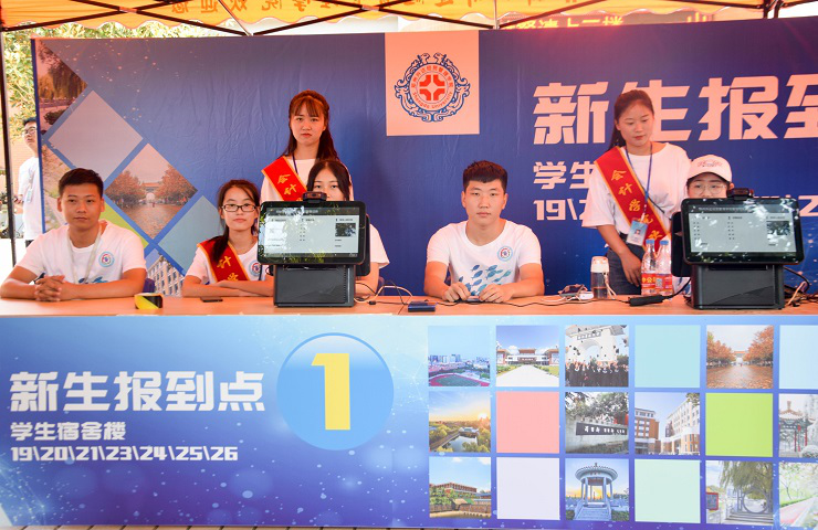 为了使365VIP英国上市官网2019级新生更加高效快捷办理入学手续,9月3日早上7:30团学会迎新成员已按照安排全部到位并开始紧张忙碌的迎新工作,365VIP英国上市官网新生分别在行政楼和升达餐厅完成报道流程,并通过数字迎新快捷地了解到公司的相关信息。数字迎新分为“网上自助报到”和“现场报到”两个环节,网上自助报道完成信息采集,学费缴纳及宿舍选取等,现场报道通过人脸识别完成身份验证后入住宿舍。