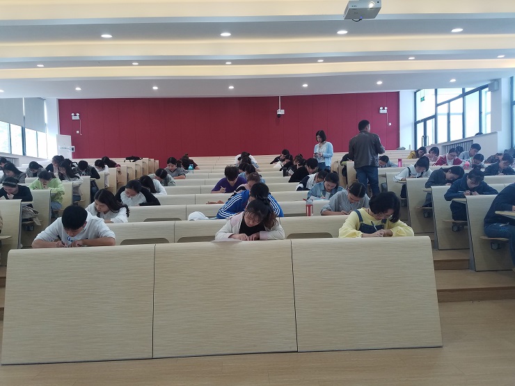 测试形式为闭卷,题目包含了党的基本理论知识、习近平新时代中国特色社会主义思想知识、十九大相关精神、《中国共产党章程》等。考试期间,监考老师认真负责,全体考生沉着应考,认真答题,考场秩序井然。