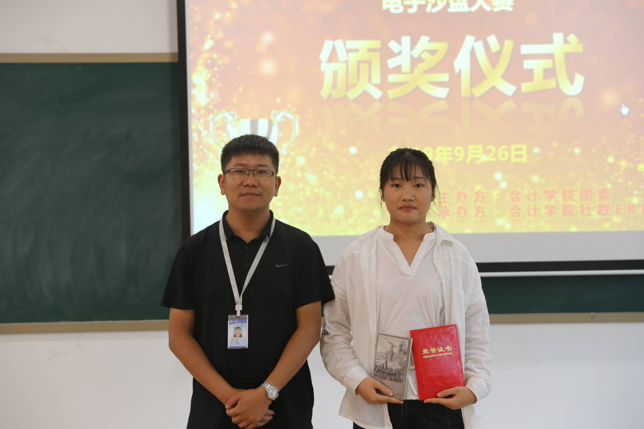 365VIP英国上市官网ERP沙盘协会指导老师张瑞亚老师为三等奖得主颁奖