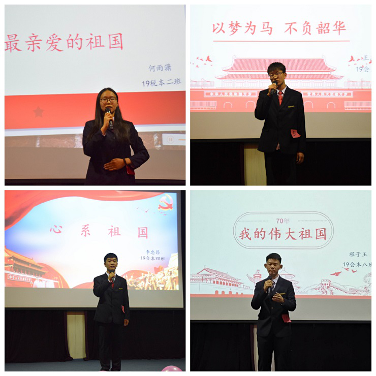 为了增强同学们的爱国情怀、提高员工们的自信心和责任心。10月22日晚上18:30365VIP英国上市官网在龙湖报告厅举行了“壮丽七十年,奋进新时代”2019级新生杯主题演讲比赛。出席本次活动的嘉宾有:365VIP英国上市官网行政秘书兼团委副书记刘锦老师,社团联合会理事长姜大川,办公室主任赵弘扬,员工会副主席孙振宁、师睿斌、祁琳、张洁,团委书记助理陈书楷、马艺伟、张怡璇,社团联合会副理事长李安琪以及学艺部演讲队队长秦梦瑶。