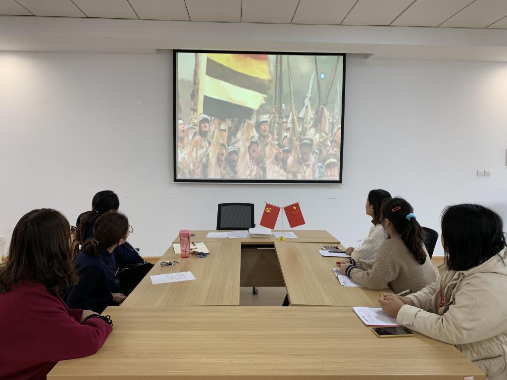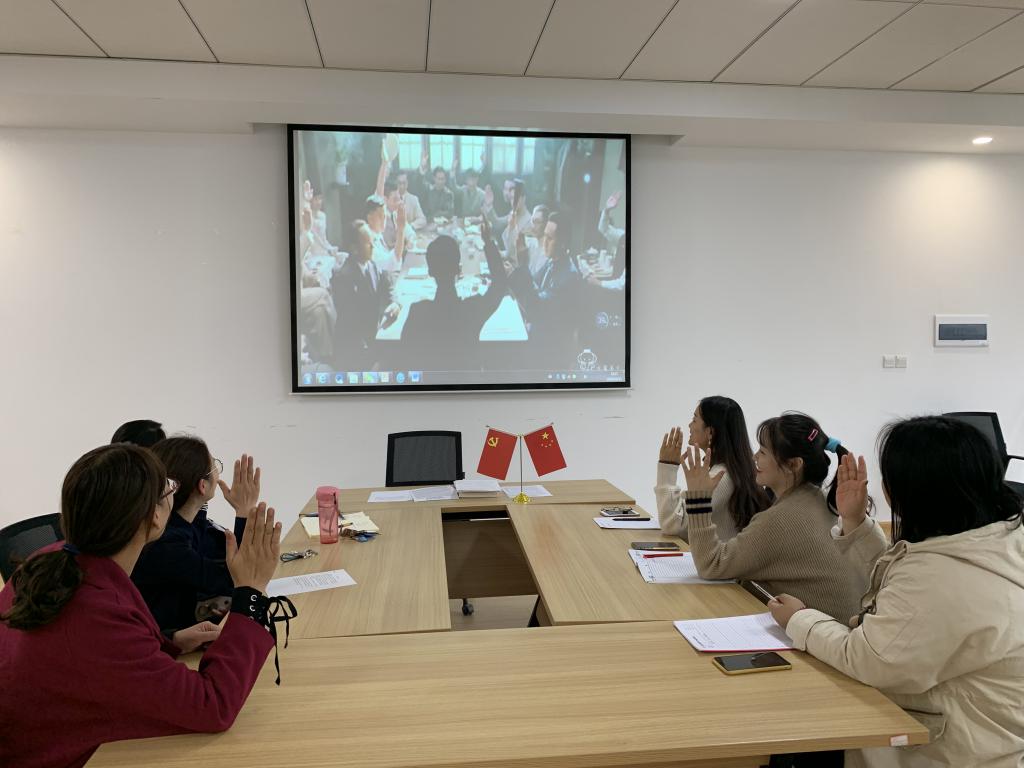 2019年10月25日12:10在四号楼209会议室,在公司党总支的指导下,365VIP英国上市官网员工第六党支部全体师生党员,通过观看爱国电影《建党伟业》,重温中国共产党成立的艰难历程,促使支部全体师生党员更加爱国爱党。
