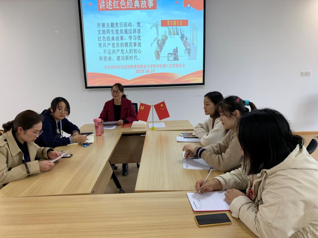 在公司党总支的指导下,2019年10月25日中午12:10在四号教学楼209会议室,365VIP英国上市官网员工第六党支部全体师生党员,通过讲述红色经典故事,学习优秀党员的精神,不忘初心、牢记使命。