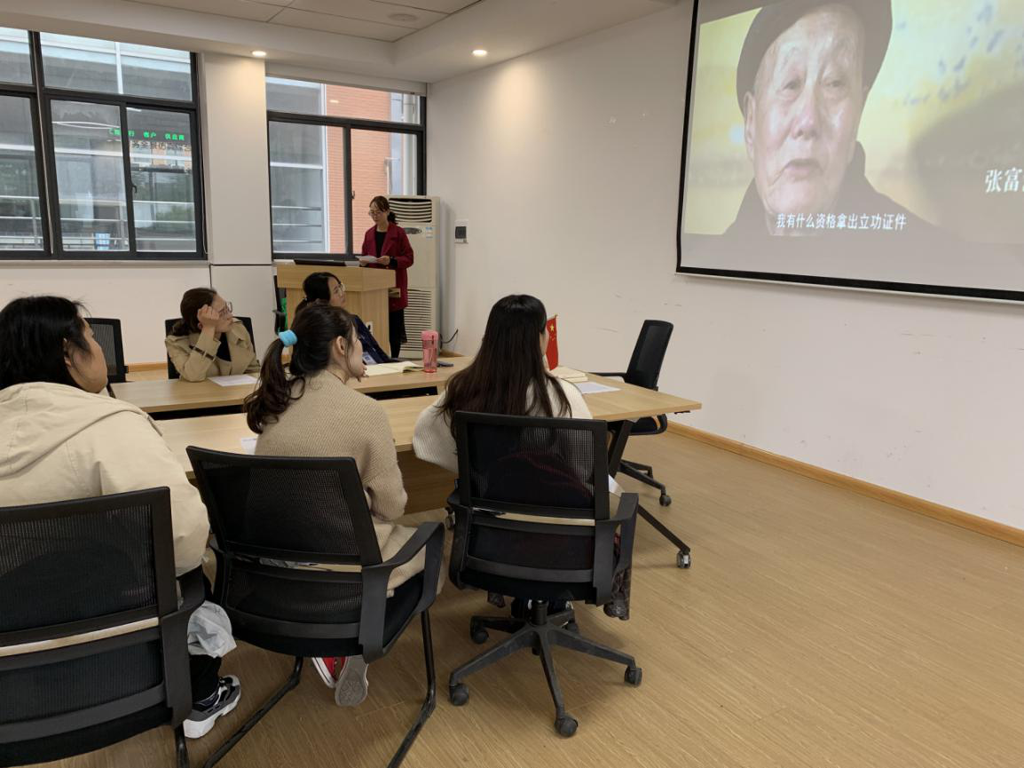 在陈晓老师的带领下,全体师生党员观看纪录片《初心永恒》,学习张富清同志的先进事迹。今年95岁的老党员张富清是原西北野战军359旅718团2营6连战士,在解放战争的枪林弹雨中九死一生,先后荣立一等功三次、二等功一次,被西北野战军记“特等功”,两次获得“战斗英雄”荣誉称号。1955年,张富清退役转业,主动选择到湖北省最偏远的来凤县工作,为贫困山区奉献一生。60多年来,张富清刻意尘封功绩,连儿女也不知情。2018年底,在退役军人信息采集中,张富清的事迹被发现,这段英雄往事重现在人们面前。