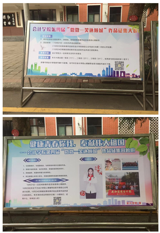 为进一步推进《高等公司员工心理健康教育指导纲要》落地落实,提升心理育人工作质量,提高老员工心理健康水平和心理健康素质,公司积极响应校心理咨询中心的工作部署,于10月21日——24日,顺利举办了第四届“微微一笑达倾城”作品征集大赛等系列活动。