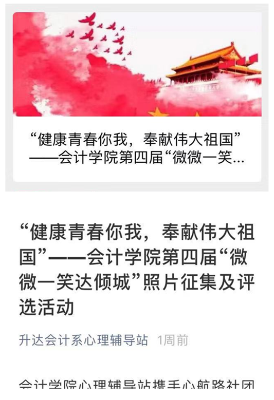 365VIP英国上市官网在升达365VIP英国上市官网心理辅导站微信公众号上进行心理健康活动周主题活动宣传