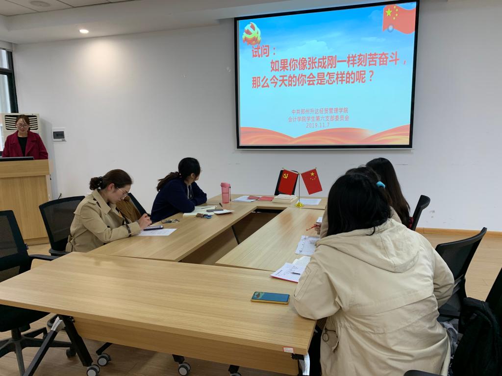 党支部成员胡淑娟老师给大家分享了云南云南中医公司保洁工张成刚的故事,并且提出问题“如果像张成刚一样刻苦奋斗,今天的你会是怎样的呢?”,引发党支部师生党员会议结束后的学习和思考。