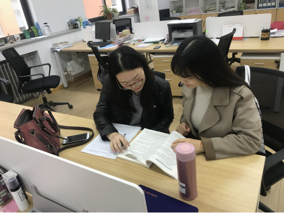 会上,两位老师按照期初定下的计划进度表要求,交流了彼此的课堂进度与教学情况,谢利娜老师提出,要以员工为本,根据员工的学习效果安排好课堂设计,财务管理涉及的计算比较多,因此要针对一些重难点知识要让员工通过练习予以巩固,学会总结,学会方法,能举一反三。