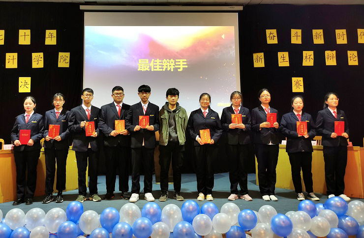 最后是激动人心的颁奖环节,由员工会副主席孙振宁为王蔓、李怡贤等选手颁发最佳辩手奖;由社团联合会理事长姜大川为19级审计2班颁发优秀奖;由员工会主席梁诗苑为会本10班颁发三等奖;由团委副书记巫晓梦为会本3班颁发二等奖;由19级新生辅导员刘婧老师为财本3班颁发一等奖;由19级新生辅导员刘爽老师为审计1班、会本3班颁发精神文明奖,为审计2班、会本8班颁发道德风尚奖,为会本10班颁发最佳组织奖;至此,新生辩论赛完美落幕。