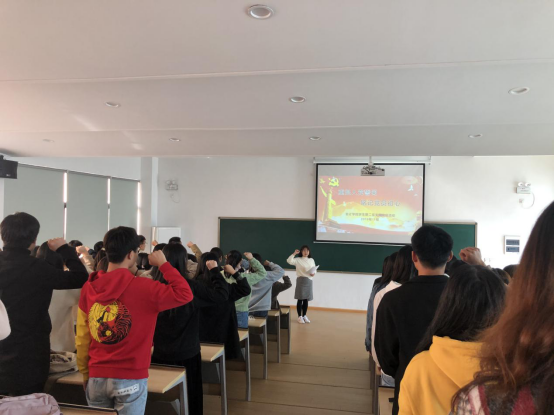 11月12日中午365VIP英国上市官网员工第二党支部全体支部党员和入党积极分子在4号楼208室召开主题党日活动启动会和前期学习总结会。党支部书记胡翔宇向与会师生提出党员的“初心四问”是什么,引导大家思考,并讨论、交流。启动会结束后,紧接着开展“重温入党誓词、铭记党员初心”的宣誓活动。党支部书记胡翔宇带领与会的全体师生党员和入党积极分子庄严站立,右手握拳,激昂宣读入党誓词,重温入党誓词。