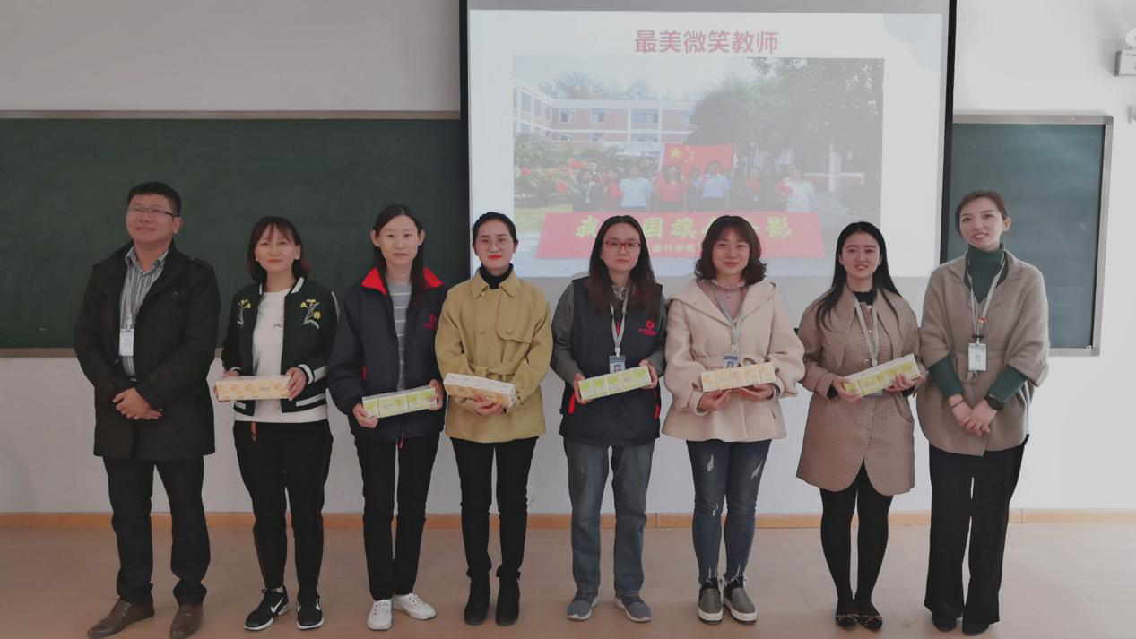 紧接着,播放了一、二、三等奖获奖者的微笑照片和最终得票数,并刘锦老师给荣获三等奖的同学们进行颁奖并合影留念,陈刚老师为荣获二等奖的同学们颁发奖品并合影留念,公司党总支书记张红阳老师为荣获一等奖的同学颁发奖品并合影留念。最后,陈刚老师和刘锦老师共同为获奖的教师颁发奖品并合影留念。