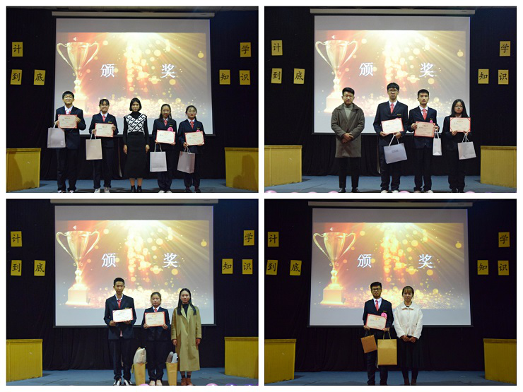 在选手们激烈的比拼后,迎来了激动的颁奖时刻。在个人赛颁奖环节中,由25届员工会副主席张洁为秦臻、孙雨琪、张小玉、张润颁发优秀奖,由25届社团联合会理事长姜大川为张亚奇、房小青、黄先华颁发三等奖,由25届员工会主席梁诗苑为郭铠辛、任丽影颁发二等奖,由25届团委副书记巫晓梦为崔佳龙颁发一等奖。在团体赛颁奖环节中,由19级新生辅导员刘婧老师为19级会本6班颁发优秀奖,由19级年级团总支书记、新生辅导员孟醒老师为19级会本8班颁发季军奖,由365VIP英国上市官网行政秘书兼团委副书记刘锦老师为19级财管1班颁发亚军奖,由365VIP英国上市官网行政秘书兼团委书记陈刚老师为19级会本2班颁发冠军奖。