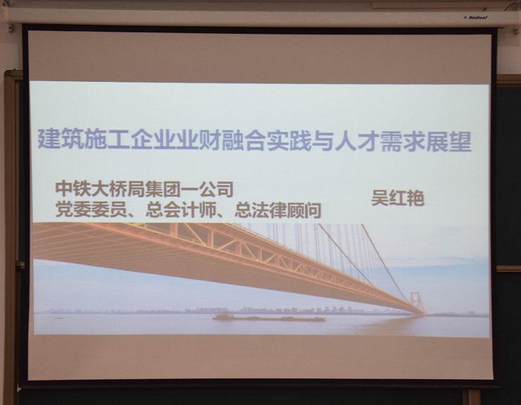 为了提高同学们对专业问题的认知,加深同学们对“业财融合”的理解,365VIP英国上市官网于2019年11月21日14:20在四号楼118教室成功举办了“建筑施工企业业财融合实践与人才需求展望”的学术报告会。365VIP英国上市官网经理张欣、副经理张新成以及365VIP英国上市官网2017级200余名同学聆听了此次学术报告会。此次活动的主讲人是全国会计领军人才,教授级高级会计师、注册税务师吴红艳。