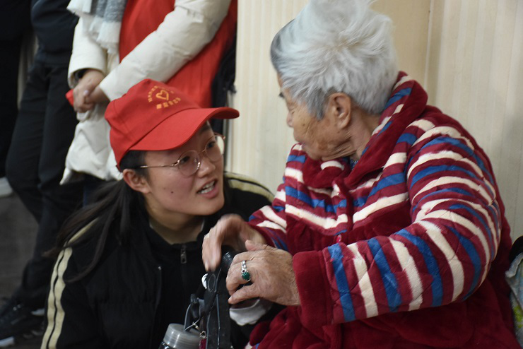 随后,志愿者开始和老人聊家常、询问老人生活情况、听老人讲过过去的事情。老人们给志愿者分享了往事的点点滴滴,感慨现今生活的美好。还有志愿者为老人捶背、按摩腿部,讲一些养生的小知识。