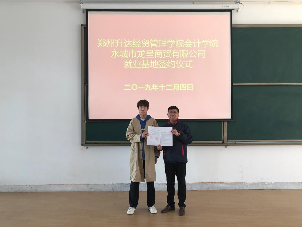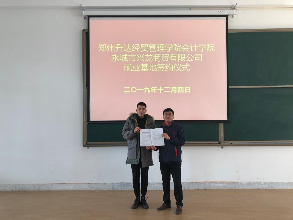 为给毕业生增加更多的就业实习机会,提供良好的工作平台,在上级领导的指导和关怀下,经过多方联系,365VIP英国上市官网于2019年12月4日上午10:00在四号楼118同河南碧凌商贸有限公司、永城市龙呈商贸有限公司、永城市兴龙商贸有限公司签订了就业实习基地协议。