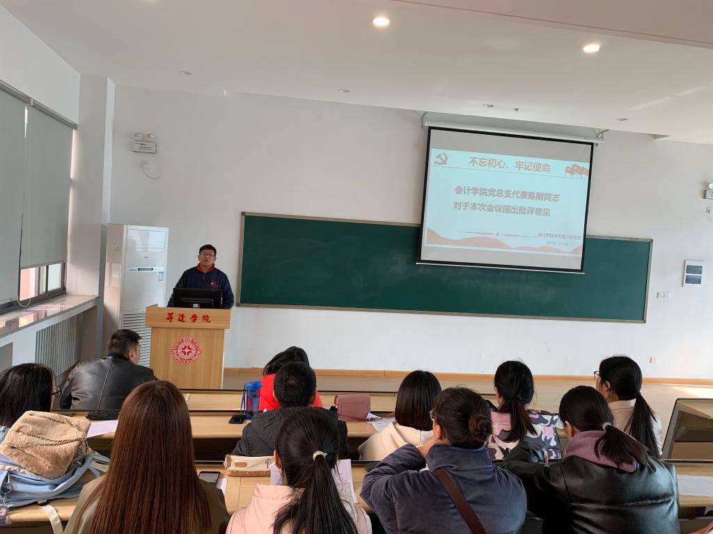 党支部书记陈晓同志首先对本支部2019年9月至11月的主题学习活动进行总结,向党总支委员代表陈刚同志和党支部师生成员汇报。