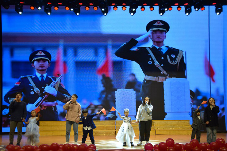 本次晚会在歌曲《我和我的祖国》中拉开了序幕,整场晚会以“壮丽七十载,奋斗新时代”为主题,分为旭日东升、披荆斩棘和辉煌中国三个序章,以时间脉络展现了中国共产党和新中国砥砺奋进、开拓创新、波澜壮阔的伟大历程。第一序章“旭日东升”,通过舞蹈《大梦薪焰》、相声《我的爷爷》、歌曲《我爱你中国》将全场观众带回到革命先烈们上下求索的年代,生动展现了中国共产党在烽火硝烟中为新中国崛起而奋斗的艰辛历程。第二序章“披荆斩棘”,通过话剧《极地使命》、演讲《致敬人民》、歌曲《七子之歌》、舞蹈《心声》让现场师生重温了七十年来风云激荡、天翻地覆的变化和举世瞩目的成就。第三序章“辉煌中国” 通过歌曲《相亲相爱》、歌舞剧《奋斗吧,中华儿女》、歌曲《红色》、《小梦想,大梦想》展现了当代中华儿女血脉相连、众志成城的磅礴力量,表达了中华儿女对新时代祖国强盛的无尽自豪。